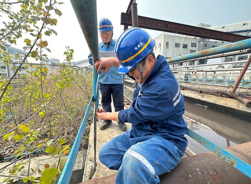 维修队立足“防风险、除隐患、保安全”核心目标,聚焦工广区域、水处理设施等重点场所,开展拉网式、地毯式隐患自查自纠。排查过程中,工作人员带着“放大镜”查细节、找问题,重点对池子扶梯、防护栏、作业踏板等关键设施进行全面“体检”,精准排查出扶梯锈蚀松动、搭接面积不达标,护栏焊点开裂、部件缺失等多项安全隐患,逐一登记造册,建立隐患排查台账,明确整改责任人、整改措施和整改时限,确保隐患底数清、责任明、整改实。