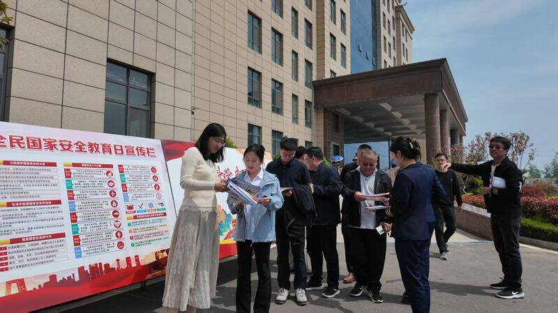 线下活动造氛围,打造宣传“实景课堂”。在工广区、办公楼、职工宿舍等重点区域,制作主题宣传展板、悬挂横幅标语,内容涵盖国家安全法律法规、反诈防骗技巧、反邪教知识等,吸引干部职工驻足观看、认真学习。活动现场,工作人员向职工发放宣传彩页200余份,现场讲解安全防范要点,将安全知识送到职工身边,在潜移默化中增强安全意识、筑牢思想防线。