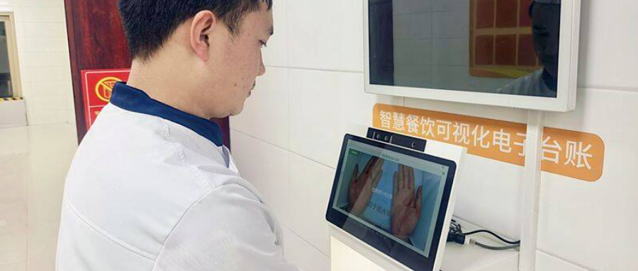 发服集团鲁南分公司万福餐厅厨师葛师傅双手轻扫晨检仪,屏幕上快速闪过体温、个人卫生、手部指甲及伤口检查的各项数据,全部合格后,他系紧围裙、戴上工帽,正式开启了一天忙碌而充实的工作。